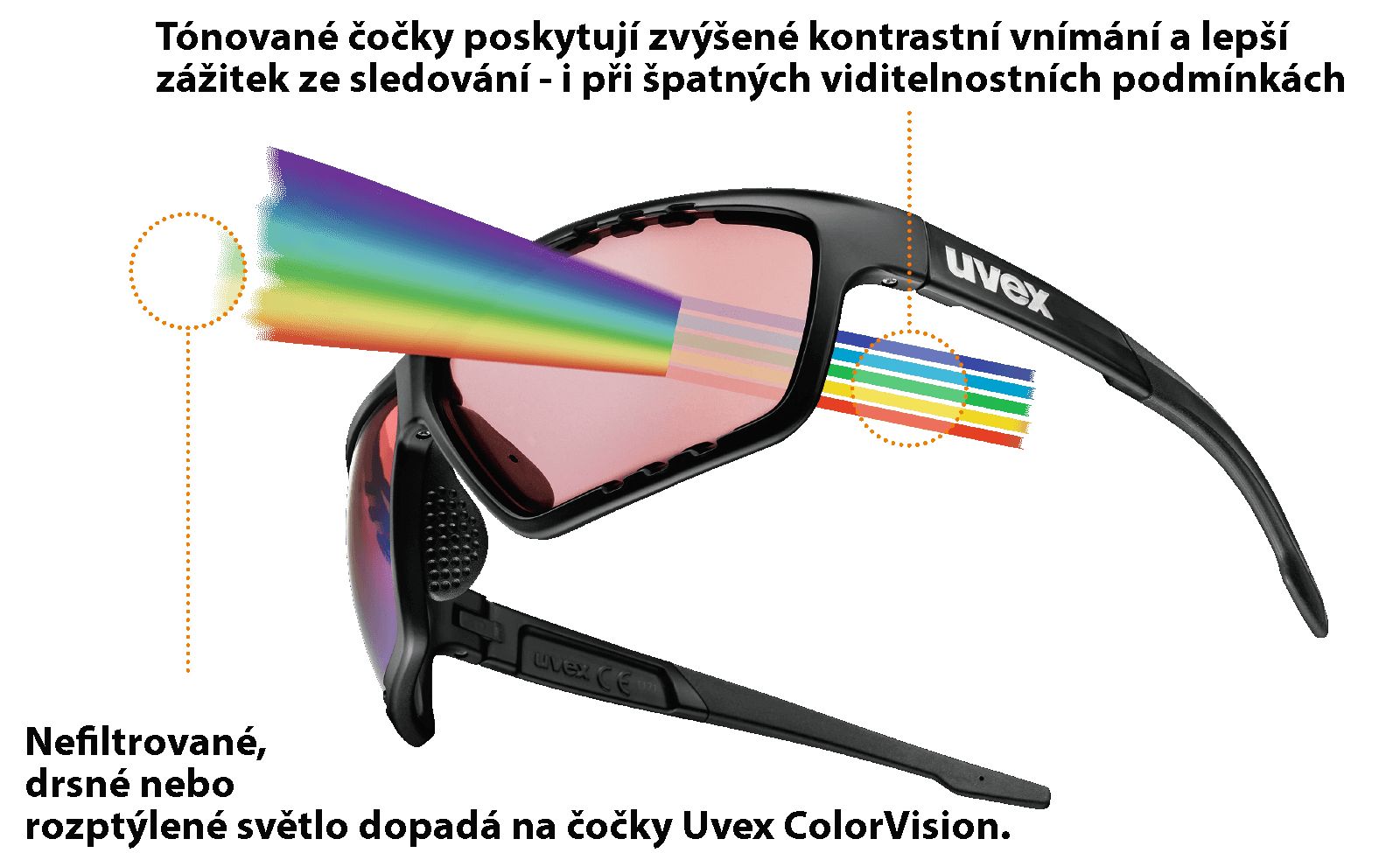 Technologie Uvex ColorVision je perfektní pro vizuální požadavky a světelné podmínky jakéhokoliv prostředí a pro jakýkoliv sport.