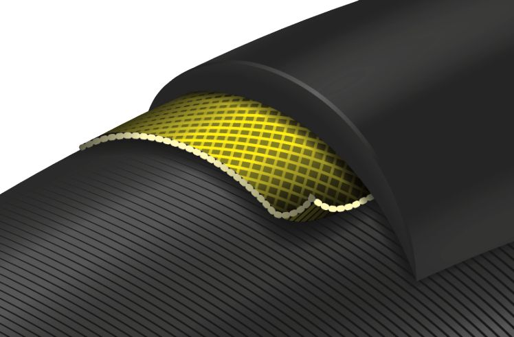 Extrémně odolná polyesterová vlákna jsou tkaná pevně křížem. Tímto způsobem je dosáhnuto velmi vysoké hustoty tkaniny, která nejenže činí Breaker odolnějším vůči cizím předmětům, ale také je obzvlášť odolná proti průrazům.