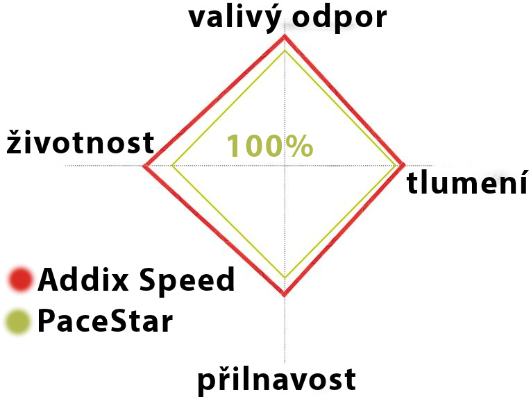 - Vylepšená konstrukce profilu pro nízký valivý odpor s velmi dobrou přilnavostí