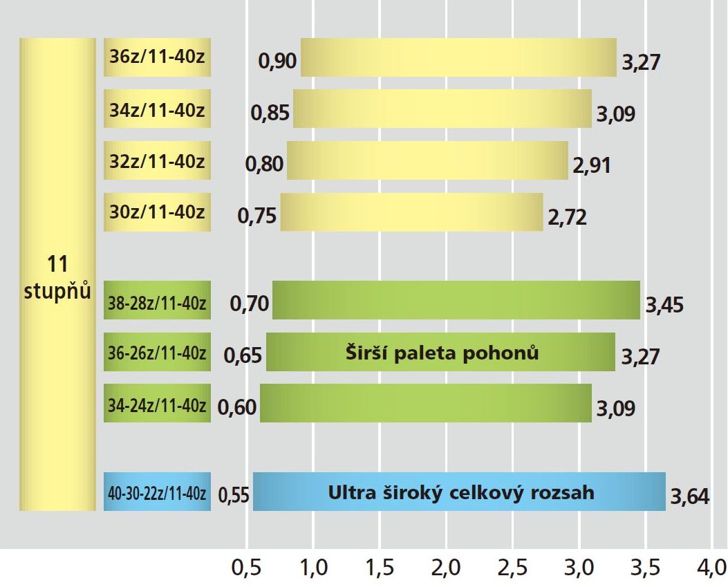 Širší jízdní rozsah / Porovnání celkového rozsahu převodů