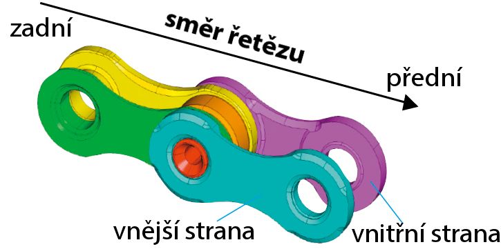 Orientovaný řetěz HG-X: vnější strana je optimalizována pro řazení vpředu a vnitřní strana pro řazení vzadu.